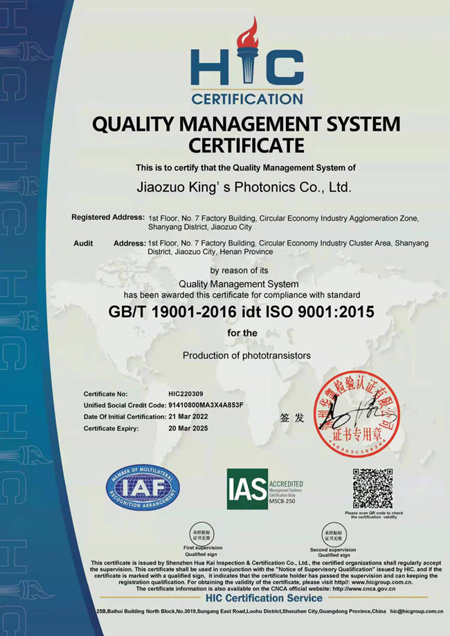 ISO9001:2015質(zhì)量管理體系證書(英文)