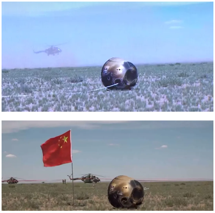 2024年6月25日14時(shí)07分,嫦娥六號(hào)返回器準(zhǔn)確著陸于內(nèi)蒙古四子王旗預(yù)定區(qū)域,工作正常,標(biāo)志著探月工程嫦娥六號(hào)任務(wù)取得圓滿成功,實(shí)現(xiàn)世界首次月球背面采樣返回。